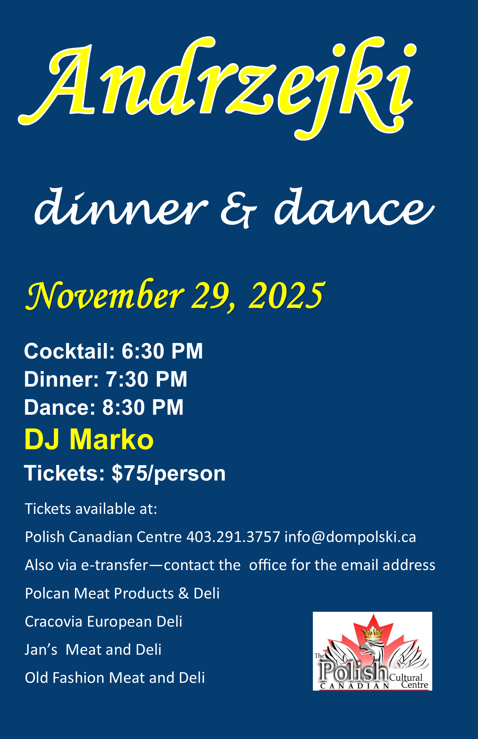 Wydarzenie ma charakter otwarty i stanowi wyjątkową okazję do wzmocnienia więzi między Polską a polską społecznością w Calgary: środa, 26 listopada, o 18:00, w Domu Polskim w Sali Kombatanta. Spotkanie upiększa nam zespól taneczny. Serdecznie zapraszamy!