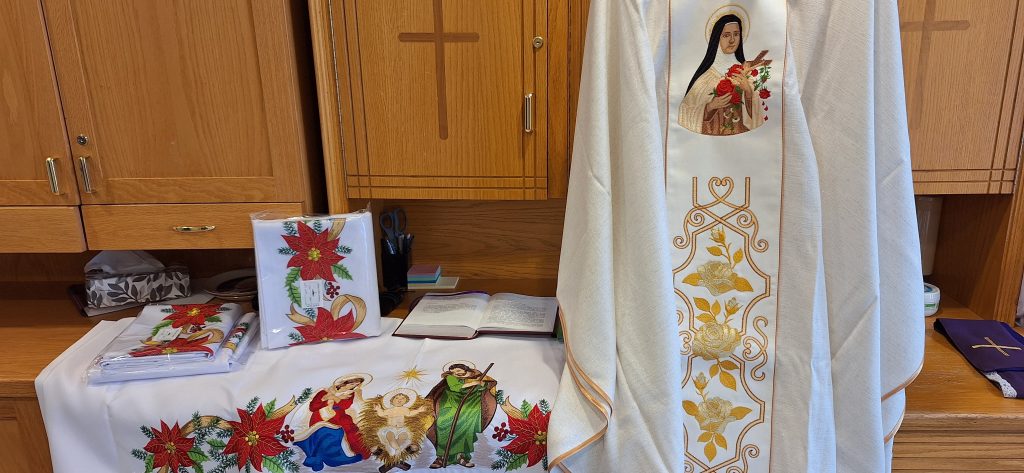 W dniu Bierzmowania otrzymaliśmy od rodziców naszej młodzieży „dar ołtarza” w wysokości $400. Siostra Jordana „dołożyła” jeszcze inne donacje i zakupiła w Polsce zestaw obrusów bożonarodzeniowych na ołtarze w naszym kościele. Dziękujemy Sponsorom! Natomiast ks. Proboszcz zakupił w Polsce ornat z wizerunkiem św. Tereski. Ten ornat nadal czeka na swojego sponsora…