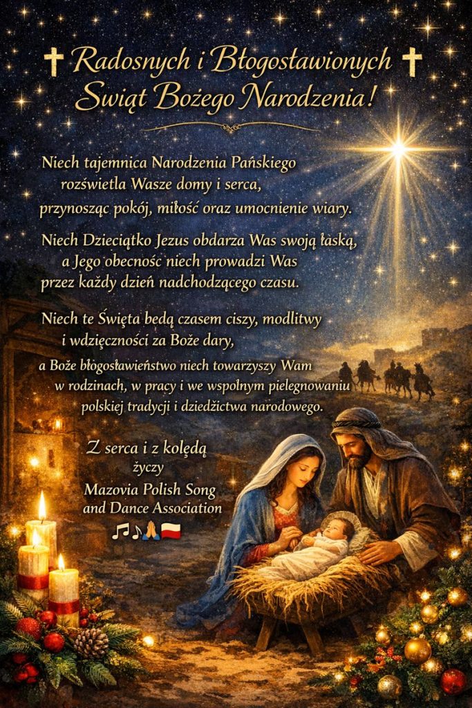 Rycerze Kolumba, Rada im. ks. Jana Otłowskiego, z okazji Świąt Bożego Narodzenia i Nowego Roku 2026, składają Wszystkim Księżom, Siostrom Dominikankom, Wszystkim Organizacjom Polonijnym i Całej Parafii Życzenia Zdrowych i Pogodnych Świąt. Niech ten czas spędzony w gronie najbliższych będzie Wyjątkowy i Moc Wigilijnego Wieczoru przyniesie Spokój i Radość, a Boża Dziecina niech Błogosławi i Towarzyszy Wam przez Całe Życie. Wielki Rycerz- Piotr Urban