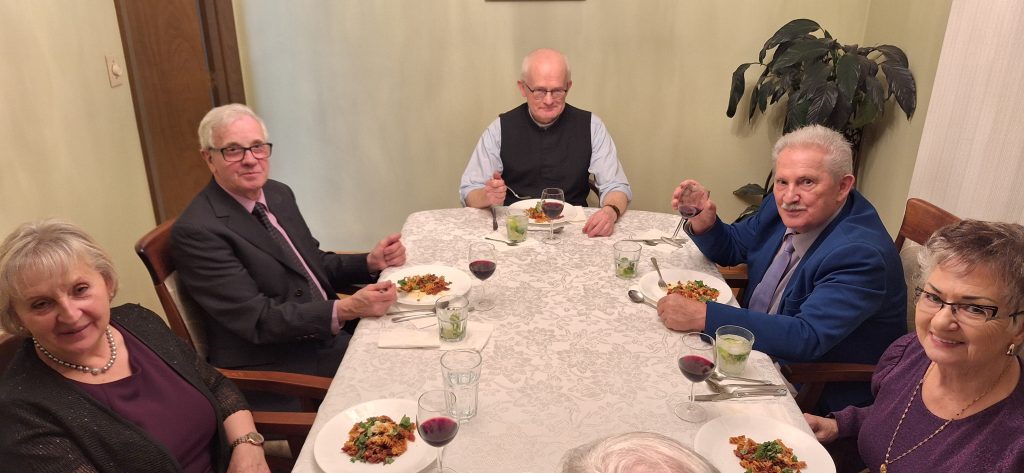 KOLACJA ‘WŁOSKA’ NA PLEBANIIGratulacje dla pp. Drzewieckich z powodu wygranego losu! Zaprosili sobie przyjaciół, pp. Gurgul na kolację.