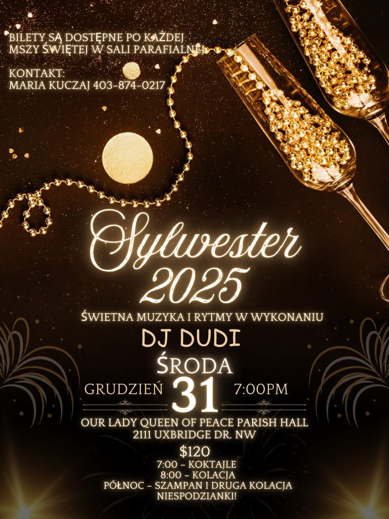ZARZĄD FUNDACJI BRATA ALBERTA W CALGARY zwraca się z prośbą do wszystkich Parafian o poparcie naszej zbiorki pieniężnej na rzecz ośrodków, którym pomagamy w Polsce. Członkowie Zarządu będą dyżurować w sali parafialnej w przedostatnią niedzielę miesiąca, czyli 21-go grudnia 2025 po dziennych Mszach świętych. Informacje na temat działalności naszej Fundacji można uzyskać w czasie zbiorki w Sali Parafialnej u członków Zarządu lub u przewodniczącej Elżbiety Kiegler tel.: 403-993-2745. Dziękujemy wszystkim naszym ofiarodawcom. Bóg zapłać!