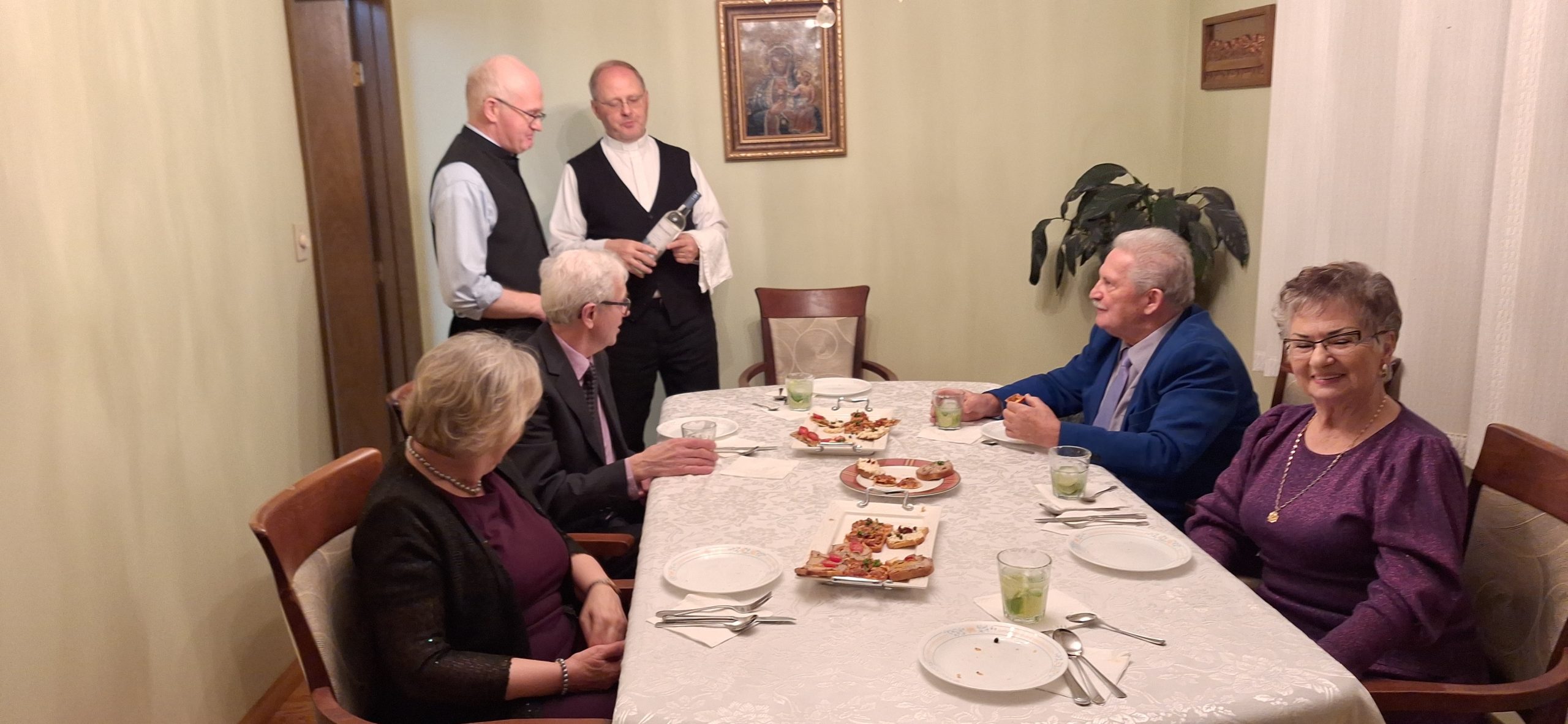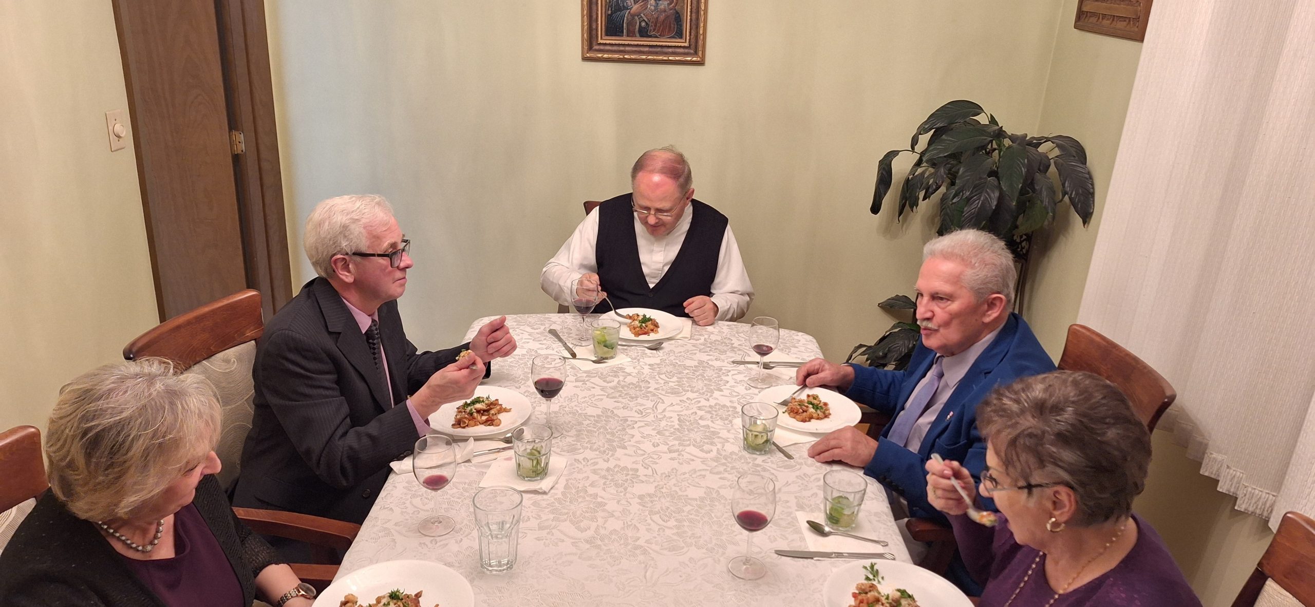 KOLACJA ‘WŁOSKA’ NA PLEBANIIGratulacje dla pp. Drzewieckich z powodu wygranego losu! Zaprosili sobie przyjaciół, pp. Gurgul na kolację.